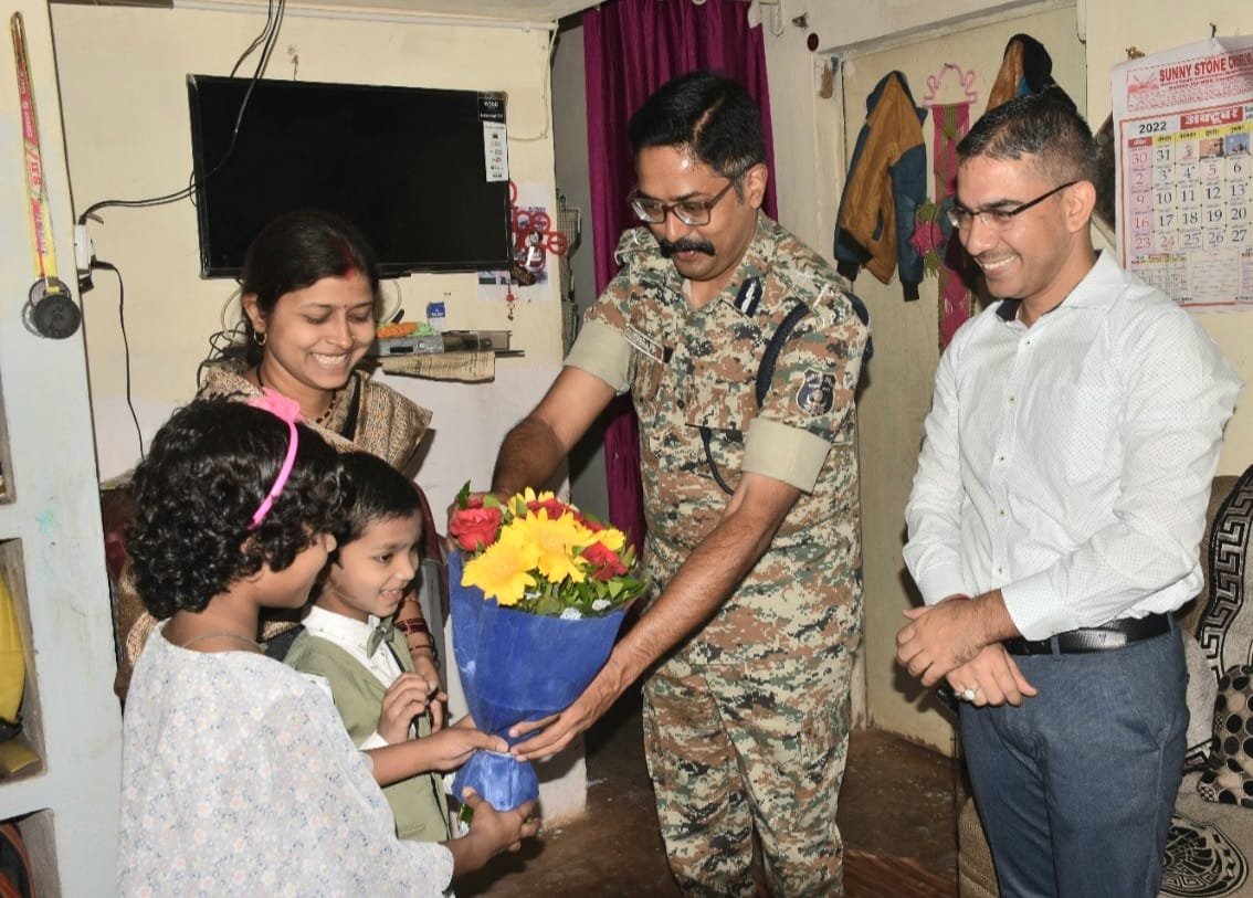 वरिष्ट पुलिस अधिकारियों ने शहीदों के घर जाकर सौंपे उपहार