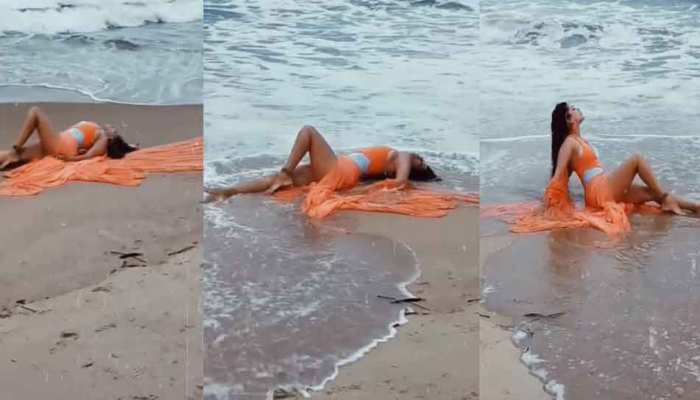 सनी ने ऑरेंज बिकिनी पहन समंदर की लहरों में मचाया गदर