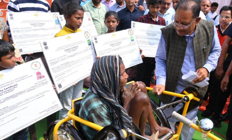 सशक्त जशपुर के अंतर्गत मुख्यमंत्री श्री  विष्णु देव साय ने  आज अपने गृह  ग्राम बगिया में दिवांगजनों को सामग्री का किया वितरण। उन्होंने हितग्राही को दिव्यांग प्रमाण पत्र,बस पास, अन्य सामग्रियों का वितरण किया।