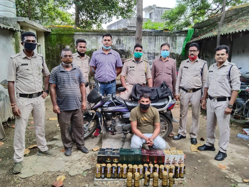 RGHNEWS प्रशांत तिवारी रायगढ जिले मे सहायक आयुक्त आबकारी श्रीमति मंजूश्री कसेर के मार्गदर्शन मे शराब तस्करी रोकथाम पर प्रभावी कार्यवाही की जा रही है… आज दिनांक को आबकारी अपराध नियंत्रण दल के द्वारा रायगढ़ (दक्षिण ) में सुबह नाकेबंदी के दौरान एकताल रायगढ़ मार्ग पर ओड़िसा की तरफ से आ रही हीरो मोटरसाइकिल वाहन क्रमांक CG15/CW-2202 का पीछा करके रोकने पर उसके पास से 12 बोतल singnature whishky, 6 बोतल ब्लेंडर prider, 6 बोतल रॉयल स्टेज और 24 केन बियर (budwiser ) एक काले रंग के बैग में होना पाया आरोपी के विरुद्ध 34(2) प्रकरण कायम कर विवेचना में लिया गया. टीम मे आबकारी उप निरीक्षक रमेश सिंह सिदार और धर्मेन्द्र शुक्ला के साथ आरक्षकों श्रीकांत राठोर, प्रभुवन बघेल, शिव वैष्णव,जितेश नायक और चालक अशोक पटेल की सराहनीय भूमिका रही