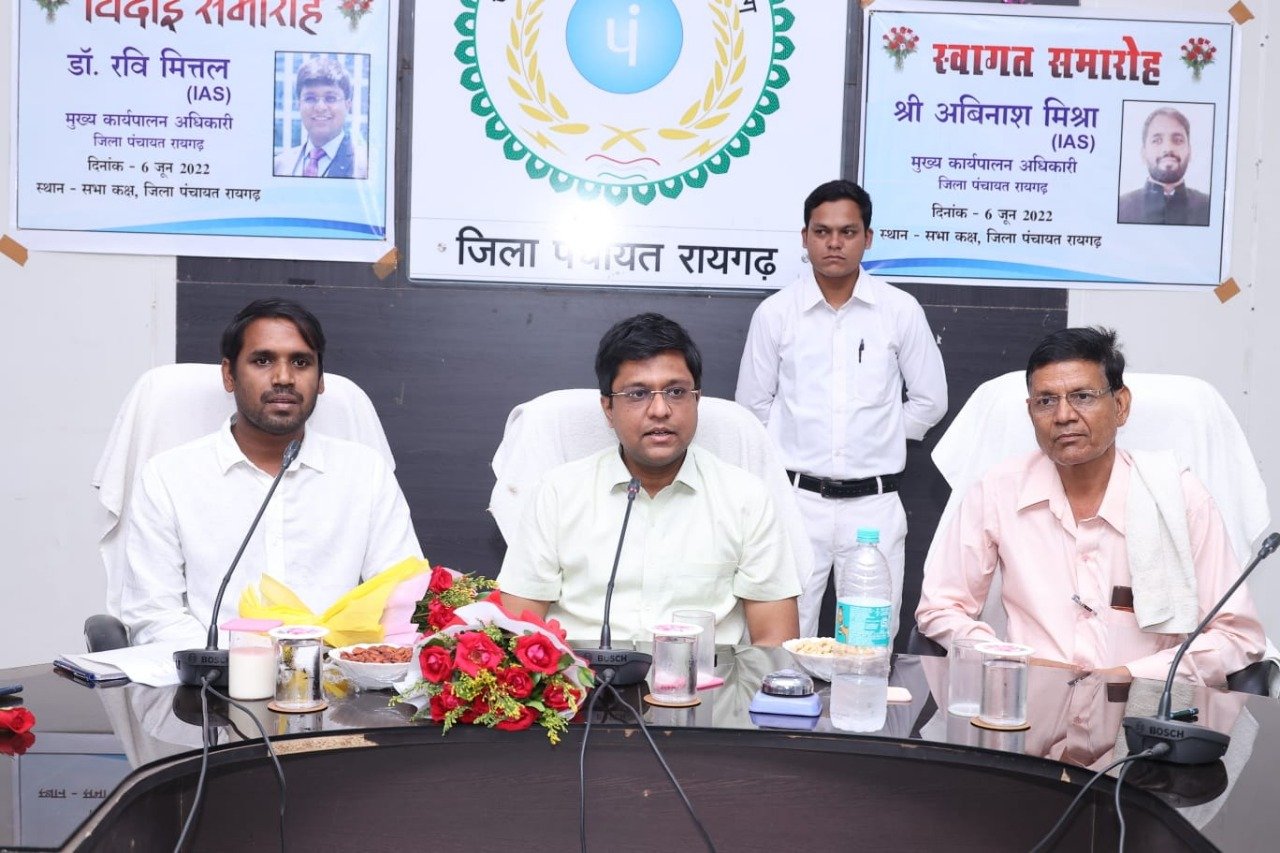 रायगढ़ जिले में पद स्थापित नए जिला पंचायत सीईओ श्री अबिनाश मिश्रा ने आज दोपहर जिला पंचायत पहुंचकर कार्यभार ग्रहण किया। 2018 बैच के भारतीय प्रशासनिक सेवा के अधिकारी श्री मिश्रा इसके पूर्व दंतेवाड़ा जिला मुख्यालय में अनुविभागीय अधिकारी का पद संभाल रहे थे।