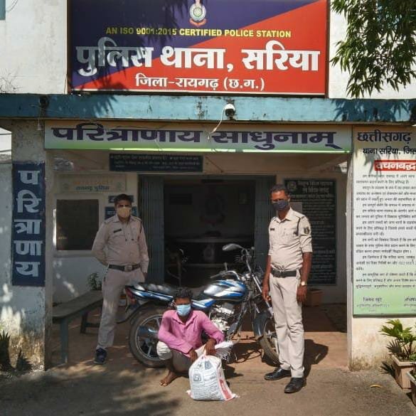 जानकारी के अनुसार आज सुबह थाना प्रभारी सरिया निरीक्षक विवेक पाटले को मुखबिर से सूचना मिली कि एक युवक मोटर सायकल पर ओड़िशा से शराब लेकर सरिया की ओर आ रहा है । तत्काल थाना प्रभारी द्वारा स्टाफ को कार्रवाई के लिये रवाना किया गया, स्टाफ द्वारा *हिच्छापुर रास्ता, अमलीपाली में* छिपकर आरोपी के आने का इंतजार किये । सुबह भोर में एक व्यक्ति बोरी में बांध कर कुछ सामान लाता दिखा जिसे रोककर पूछताछ करने पर अपना नाम *विनोद कुमार सिदार पिता सीताराम सिदार उम्र 24 वर्ष साकिन अमलीपाली* का रहने वाला बताया। जिसके कब्जे से मोटर सायकल में बंधा हुआ प्लास्टिक के बोरी अंदर प्लास्टिक के थैला में 20 लीटर महुआ शराब मिला । आरोपी से *20 लीटर महुआ शराब कीमती ₹2,000 एवं परिवहन में प्रयुक्त वाहन CG-13-AK 0648* की जप्ती कर धारा 34(2),59(क) आबकारी एक्ट की कार्रवाई कर रिमांड पर भेजा गया है ।