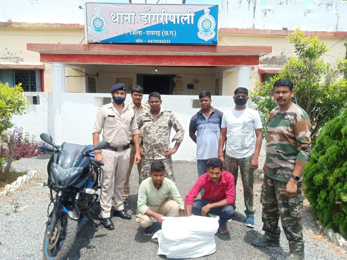 जानकारी के अनुसार दिनांक 17/07/2021 को ओडिसा के कालाहांडी जिले से दो लड़के गांजा लेकर बाइक पर सोहेला-बरमकेला मार्ग से बिलासपुर जाने के लिये निकले होने की सूचना पर एसडीओपी सारंगढ़ प्रभात पटेल के दिशा निर्देशन पर सहायक उप निरीक्षक राम कुमार मानिकपुरी के हमराह आरक्षक विनय तिवारी, सुशील यादव, किशोर एक्का, कृष्णा डनसेना नाकेबंदी के लिये *सोहेला-बरमकेला मार्ग डोंगरीपाली गैस गोदाम* के पास नाकेबंदी किया गया था, दोपहर करीब 14:00 बजे पुलिस टीम द्वारा वाहन एक *बजाज पल्सर 220 मोटर सायकल क्रमांक- CG07 BV-3126* को रोका गया, पूछताछ करने पर वाहन चालक ने अपना नाम *पिबना हरिजन पिता रापोंगा हरिजन उम्र 30 वर्ष साकिन बिरीपोडी पोस्ट मनीकेरा थाना रामपुर जिला कालाहाण्डी ओडिसा* व पिछे शीट मै बैठा व्यकित अपना नाम *निलु मांझी पिता गजाचन्द्र मांझी उम्र 27 वर्ष साकिन बिरीपोडी पोस्ट मनीकेरा थाना रामपुर जिला कालाहाण्डी ओडिसा* का रहने वाला बताये, जिन्हे नाकेबंदी के संबंध में जानकारी देकर उनकी विधिवत तलाशी ली गई । जिनके पास से पुलिस को पैकेट में बंधा हुआ मादक पदार्थ गांजा कुल वजन *10 किलो, कीमती ₹50,000* का मिला, पूछताछ में आरोपीगण कालाहांडी से बिलासपुर सप्लाई करने लेकर जाना बताये, डोंगरीपाली पुलिस आरोपियों से *10 किलो गांजा व पल्सर बाइक की जप्ती* कर आरोपियों पर NDPS Act. के तहत कार्रवाई कर रिमांड पर भेजा गया है । इसके पूर्व दिनांक 14/07/2021 को सोहेला बरमकेला मार्ग में ही डोंगरीपाली पुलिस द्वारा दो गांजा तस्करों से 15 किलो गांजा बरामद कर आरोपियों को रिमांड पर भेजा गया था।
