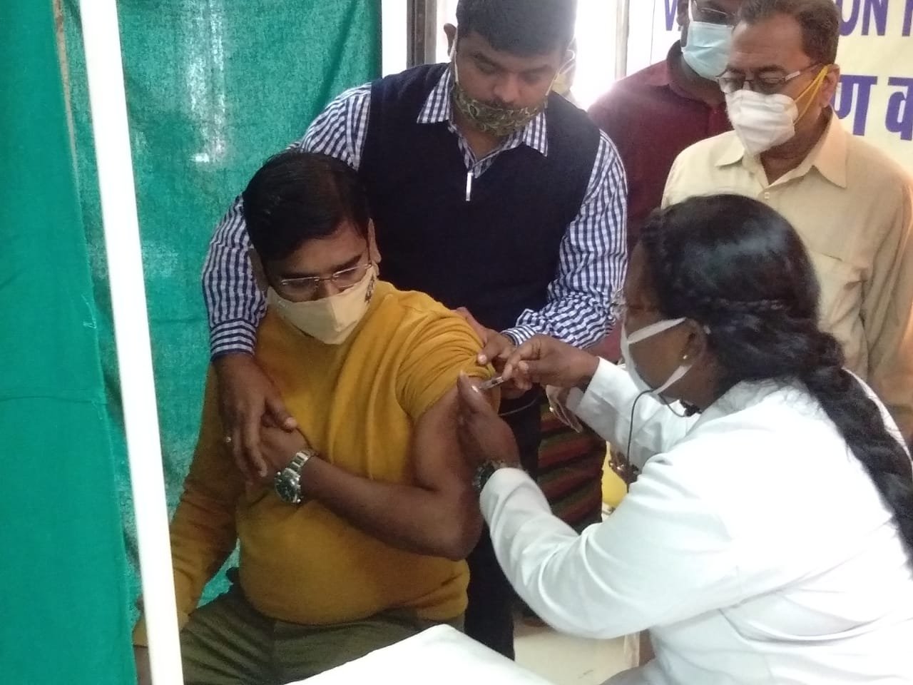 RGHNEWS 5 फरवरी से कोविड-19 के वैक्सीनेशन के दूसरे चरण में फ्रंट लाइन वर्कर्स को कोरोना वैक्सीन लगाई जा रही । पुलिस अधीक्षक संतोष सिंह की बारी आने पर आज वे मेडिकल कॉलेज रायगढ़ जाकर कोरोना वैक्सीन की पहली डोज लगवाये । जिला पुलिस बल रायगढ़ में कार्यरत *1,237 अधिकारी व जवानों* का कोरोना वैक्सीनेशन के लिये डाटा तैयार कर पुलिस मुख्यालय भेजा गया है । पुलिस अधीक्षक द्वारा इकाई के सभी अधिकारी व जवानों को अपनी बारी में अनिवार्य रूप से वैक्सीन लगवाने को कहा गया है । आज पुलिस अधीक्षक के साथ ही मेडिकल कॉलेज में एडिशनल एसपी अभिषेक वर्मा, सीएसपी अविनाश सिंह ठाकुर द्वारा भी वैक्सीन की पहली डोज लगवाया गया है ।