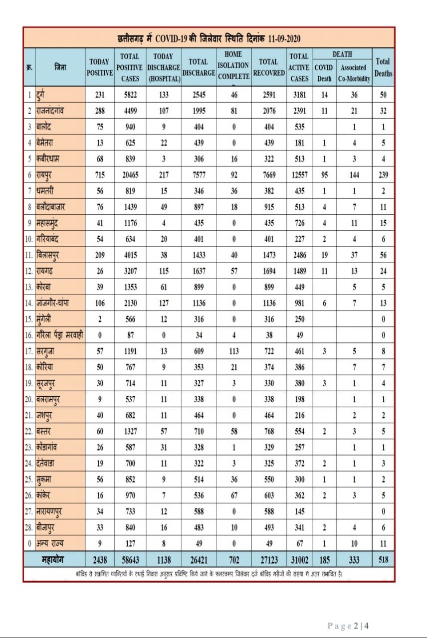 *✍️RGHNEWS ब्रेकिंग:- छत्तीसगढ़ में कोरोना अपना कसर नहीं छोड़ रहा है, वही आज छत्तीसगढ़ में मिले 2438 कोरोना के मरीज, देखे आपके जिले में कितने मिले मरीज✍️*