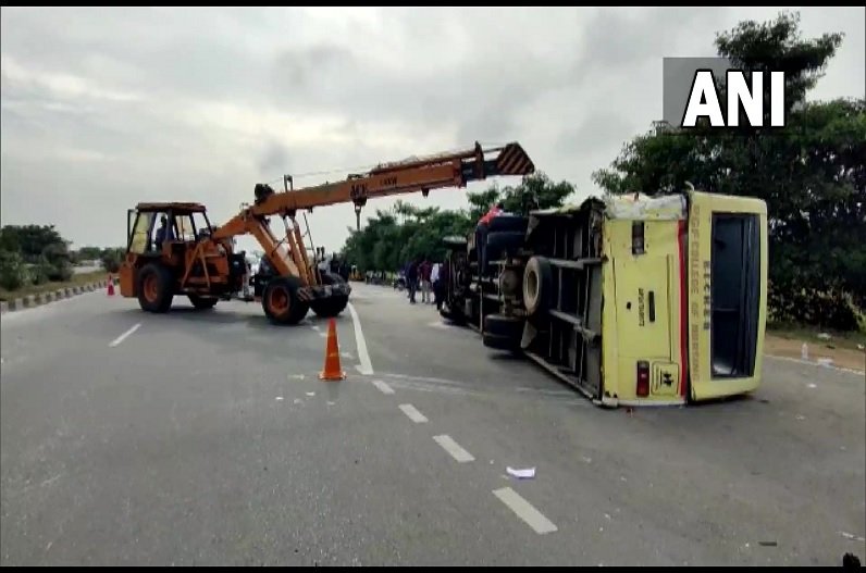40 nursing students overturned तेलंगाना।तेलंगाना के नालगोंडा जिले में एक दर्दनाक हादसा हो गया है। यहां नर्सिंग छात्रों को ले जा रही एक बस अनियंत्रित होकर पलट गई। जिसके बाद पीछे से आ रही एक लॉरी ने टक्कर मार दी। इस इस हादसे में कई छात्रों की घायल होने की खबर है।