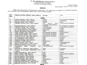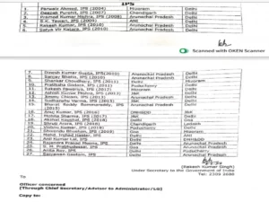 Delhi IAS-IPS Transfer List Today ये सभी अधिकारी दिल्ली से अंडमान, अरुणाचल प्रदेश, मिजोरम, गोवा, चंडीगढ़, लक्षद्वीप, जम्मू-कश्मीर, पुडुचेरी और लद्दाख भेजे औऱ बुलाए गए हैं। एमएचए के नोटिफिकेशन में 2003 से 2019 बैच के आईएएस औऱ 2004 से 2019 बैच के आईपीएस अधिकारियो का जिक्र है।