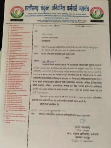 बहरहाल हम बात कर रहे हैं छत्तीसगढ़ के अनियमित कर्मचारियों का। 2 लाख 80 हजार अनियमित कर्मचारी बीजेपी को वोट देंगे। संगठन ने समर्थन पत्र प्रदेश अध्यक्ष को सौंप दिया हैं। समर्थन पत्र में लिखा है कि छत्तीसगढ़ विधानसभा चुनाव 2023 में भारतीय जनता पार्टी के घोषणा पत्र मोदी के गारंटी के अनुसार 100 दिन के भीतर अनियमित कर्मचारीयों के लिए कमेटी गठित करने का उल्लेख था।