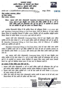 मिली जानकारी के अनुसार प्रदेश की डबल इंजन की सरकार ने संविदा कर्मचारियों के नियमितीकरण की प्रक्रिया शुरू कर दी है। ग्रामीण विभाग एवं पंचायती राज विभाग की ओर से जारी आदेश के अनुसार जनवरी 2022 द्वारा जारी राजस्थान कांट्रेक्च्युअल टू सिविल पोस्ट रूल 2022 के नियम-20 के तहत ग्रामीण विकास विभाग के प्रशासनिक नियंत्रण में सृजित 4966 नियमित पदों की प्रशासनिक स्वीकृति मार्च 2024 को जारी की गई है। इन आदेशों के तहत महात्मा गांधी नरेगा योजना के अंतर्गत नियुक्ति प्राप्त संविदाकर्मी जो 9 वर्ष या उससे अधिक की अवधि में कार्य पूर्ण कर चुके हैं, उन्हें स्थाई किया जाना उनकी स्क्रीनिंग की जानी है।