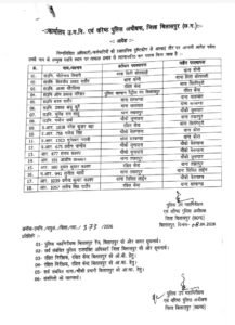 Bilaspur Police Transfer: छत्तीसगढ़ के बिलासपुर जिले के पुलिस महकमे में एक बार फिर बड़ा फेरबदल हुआ है। यहां एक साथ 33 पुलिसकर्मियों का तबादला किया गया है। इनमें कई थानों के प्रभारी भी शामिल है। ये पुलिसकर्मी एक की थाने में लंबे समय से जमे हुए थे। SSP रजनेश सिंह ने ट्रांसफर के संबंध में आदेश जारी कर दिया है।