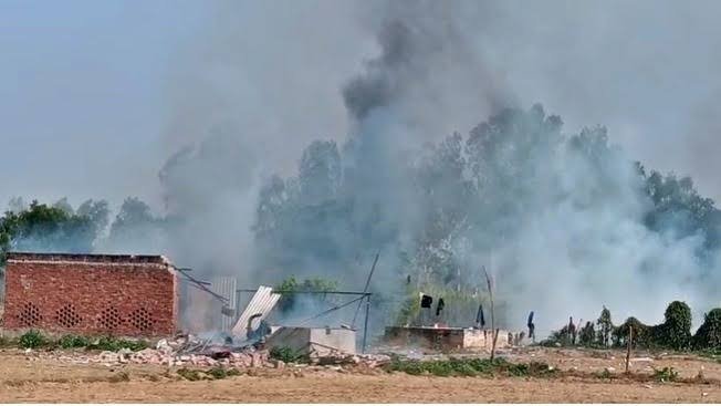 Blast in Firecracker Factory यूपी के बाराबंकी जिले के सराय बरई गांव में गुरुवार को एक अवैध पटाखा फैक्ट्री में विस्फोट हो गया। विस्फोट इतना तेज था कि पूरे गांव की जमीन हिल उठी और दूर-दराज के इलाकों तक उसकी आवाज सुनाई दी। अचानक हुए इस विस्फोट से गांव और आस-पास के क्षेत्रों में अफरा-तफरी और दहशत का माहौल फैल गया। धमाके के बाद फैक्ट्री के मलबे से रुक-रुक कर कई घंटों तक छोटे-छोटे विस्फोट होते रहे, जिससे राहत और बचाव कार्य में बाधा आई। स्थानीय लोगों ने बताया कि पिछले कई महीने से यह फैक्ट्री अवैध रूप से चलाई जा रही थी। इस फैक्ट्री में शादी-विवाह में इस्तेमाल होने वाले पटाखे बनाए जा रहे थे। इस धमाके में दो लोगों की मौके पर ही दर्दनाक मौत हो गई और उनके शरीर के टुकड़े कई मीटर तक बिखर गए। वहीं, तीन अन्य लोग गंभीर रूप से झुलस गए, जिन्हें इलाज के लिए जिला अस्पताल में भर्ती कराया गया है। तीनों की हालत नाजुक बताई जा रही है।