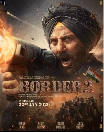 Border 2 First Poster स्वतंत्रता दिवस के खास मौके पर फिल्म ‘बॉर्डर 2’ के मेकर्स ने फिल्म का पहला पोस्टर रिलीज किया है। साथ ही फिल्म की रिलीज की तारीख का भी ऐलान किया गया। इस मोशन पोस्टर में बताया गया है कि फिल्म 22 जनवरी 2026 को सिनेमाघरों में रिलीज होगी।