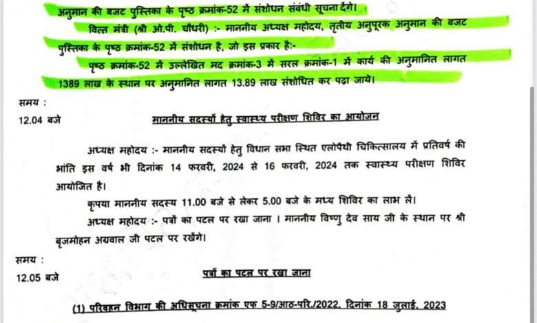 इसके पश्चात विधानसभा में संशोधन सूचना प्रस्तुत की गई और 14 फरवरी 2024 को दोपहर 12:03 बजे सत्र के दौरान उक्त संशोधन सूचना को पढ़ा गया। संशोधन सूचना के अनुरूप “13.89 लाख” का संशोधन भी उसी समय कर दिया गया।