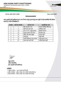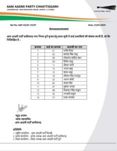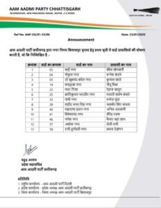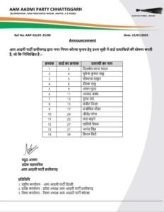 CG Latest News: छत्तीसगढ़ में आम आदमी पार्टी ने जारी की अपनी पहली सूची…