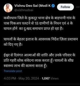 Cg News: छत्तीसगढ़ कवर्धा हादसे में 18 लोगों की मौत,CM बिष्णुदेव साय ने जताया शोक
