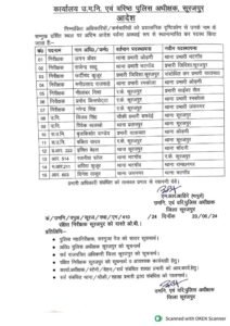 Cg News सूरजपुर 24 जून 2024। सुरजपुर में प्रशासनिक कसावट लाने लंबे समय से एक ही स्थान पर जमे साथ निरीक्षक, उपनिरीक्षक, एएसआई, हेड कांस्टेबल और कांस्टेबल सहित पन्द्रह पुलिस कर्मियों का ट्रांसफर किया गया है, इस बाबत वरिष्ठ पुलिस अधीक्षक सुरजपुर एम. आर. आहिरे ने आदेश जारी किया है, देखें सूची…