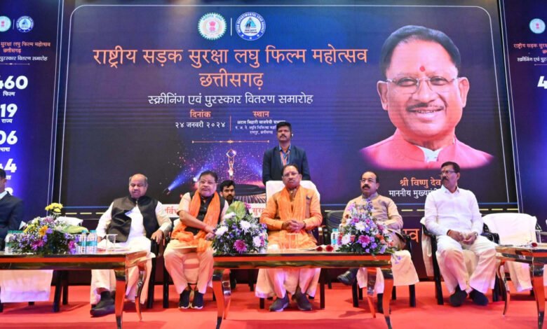 मुख्यमंत्री श्री साय ने इस अवसर पर यातायात संदर्शिका और पोस्टर का विमोचन किया। मुख्यमंत्री ने राष्ट्रीय लघु फिल्म महोत्सव में छत्तीसगढ़ी और छत्तीसगढ़ की विभिन्न भाषाओं तथा भारतीय भाषाओं की लघु कैटेगरी की श्रेष्ठ फिल्मों, सर्वश्रेष्ठ कहानी और सर्वश्रेष्ठ कलाकार को पुरस्कार राशि का चेक और स्मृति चिन्ह देकर पुरस्कृत किया। छत्तीसगढ़ी फिल्मों की श्रेणी में लघु फिल्म ’गलती मोर सजा तोर’ को प्रथम, ’द टेल ऑफ नेगलिजेन्स’ को द्वितीय और हेलमेट लघु फिल्म को तृतीय पुरस्कार प्रदान किया गया। इस श्रेणी में बेस्ट स्टोरी के लिए ’गलती मोर सजा तोर’ फिल्म के लिए लिमेश कुमार साहू, बेस्ट सिनेमेटोग्राफी का पुरस्कार द टेल ऑफ नेगलिजेन्स के रिशिल थवारे और सर्वश्रेष्ठ कलाकार का पुरस्कार हेलमेट के बिन्नी पाल को दिया गया।