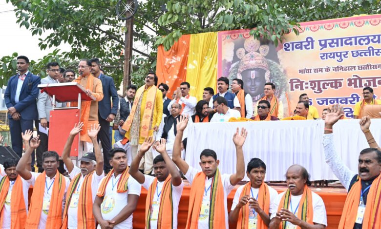 मुख्यमंत्री श्री विष्णु देव साय ने अयोध्या में भंडारे के आयोजन के लिए रामलला के ननिहाल से कार्यकर्ताओं की टीम को रवाना करने के लिए आयोजित कार्यक्रम में पहुंचे