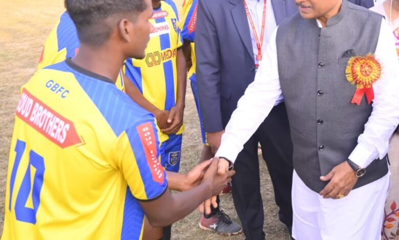 मुख्यमंत्री ने एफ. सी. माकरचुंवा, तहसील पत्थलगांव और गोंड ब्रदर्स किंजिरकेला उड़ीसा के बीच खेले गए फाइनल मुकाबले का आनंद लिया और खिलाड़ियों का उत्साहवर्धन किया।