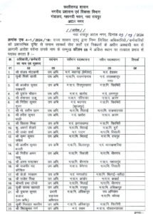 Cg News रायपुर 9 सितंबर 2024। छत्तीसगढ़ में नगरीय प्रशासन विभाग में बड़ी संख्या में अधिकारीयों के तबादले हुए हैं। अधीक्षण अभियंता, कार्यपालन अभियंता उप अभियंता, कनीय अभियंता सहित कई अधिकारियों के तबादले हुए हैं।