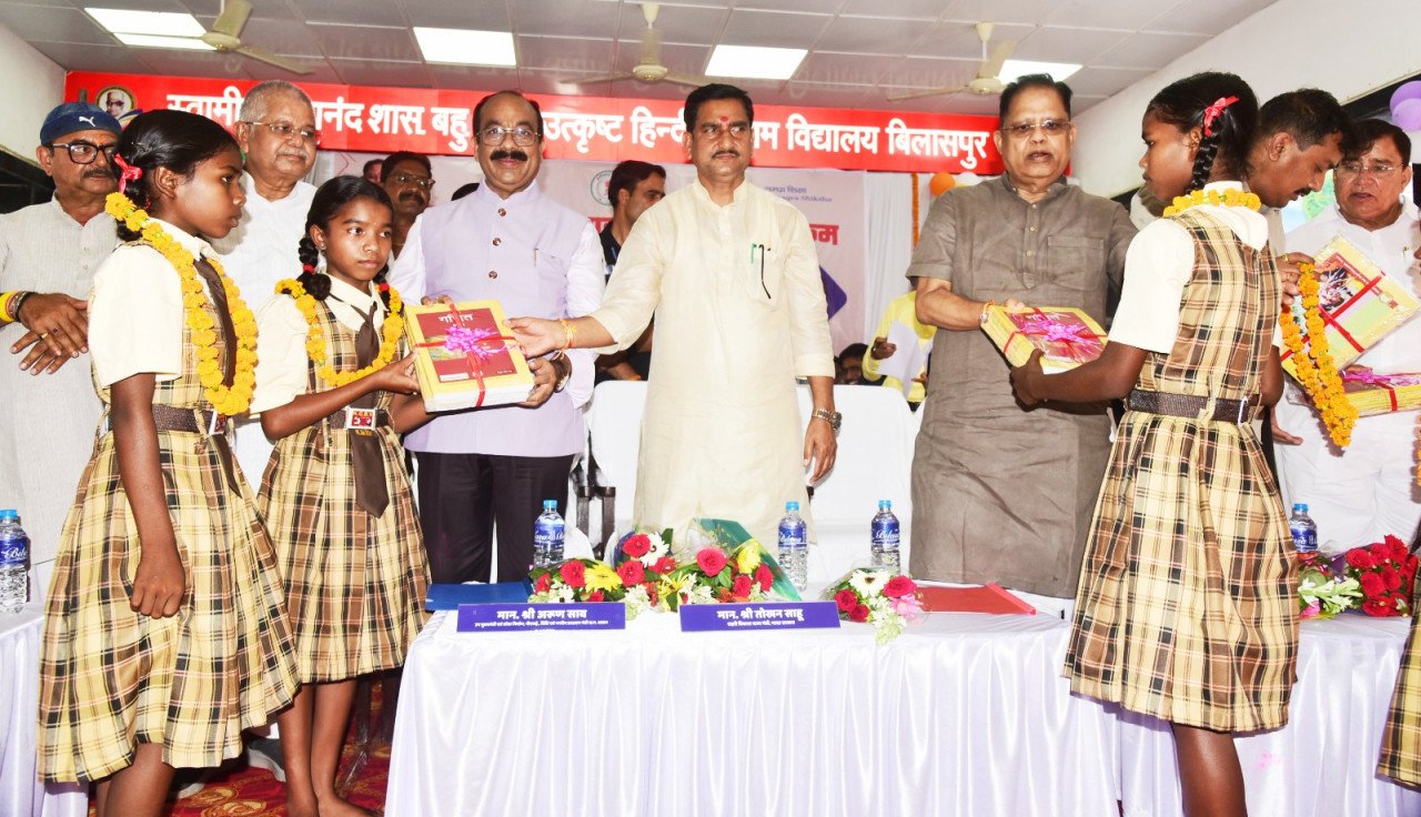 आवास एवं शहरी कार्य राज्य मंत्री, भारत सरकार श्री तोखन साहू आज बिलासपुर स्थित बहुउद्देशीय उच्चतर माध्यमिक विद्यालय दयालबंद में आयोजित जिला स्तरीय शाला प्रवेशोत्सव में बतौर मुख्य अतिथि शामिल हुए। कार्यक्रम की अध्यक्षता उपमुख्यमंत्री श्री अरूण साव ने की। इस अवसर पर नवप्रवेशी बच्चों को माला पहनाकर, तिलक लगाकर गणवेश और पाठ्यपुस्तक का वितरण किया।
