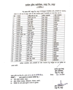 Cg News:  छत्तीसगढ़ की राजधानी रेंज के अलग-अलग जिलों में लंबे समय से जमे हुए. पदस्थ 24 पुलिसकर्मियों का बड़ा फेरबदल किया गया। रविवार को आईजी अमरेश मिश्रा ने ट्रांसफर आदेश जारी किया। इसमें रायपुर के भी 17 पुलिसकर्मी शामिल हैं।
