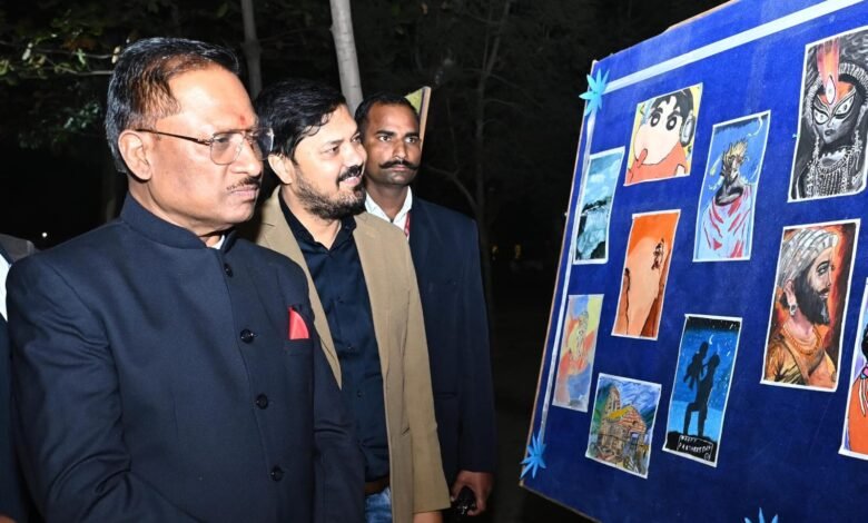 Cg News: मुख्यमंत्री श्री साय ने इस अवसर पर अकादमी के छात्र-छात्राओं द्वारा बनाई गई पेंटिग और फाईन आर्ट की कलाकृतियों की प्रदर्शनी का भी अवलोकन किया।