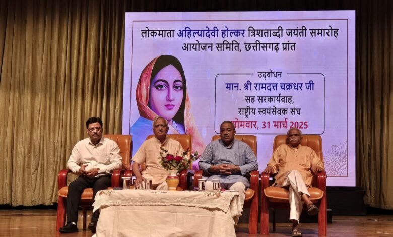 Cg News: लोकमाता अहिल्यादेवी के जीवन चरित्र को आत्मसात करना होगा : श्री रामदत्त चक्रधर, सह सरकार्यवाह, राष्ट्रीय स्वयंसेवक संघ