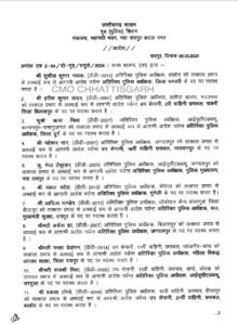 Cg News राज्य सरकार ने बड़ी संख्या में एडिश्नल एसपी के तबादले दिये हैं। रायपुर सहित कई जिलों के एडिश्नल एसपी बनदले हैं। देखिये लिस्ट, किसे कहां भेजा गया.
