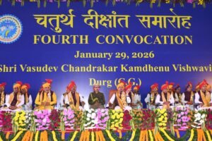 Cg News Today: रायपुर, 29 जनवरी 2026/दाऊ श्री वासुदेव चन्द्राकर कामधेनु विश्वविद्यालय दुर्ग का चतुर्थ दीक्षांत समारोह आज विश्वविद्यालय परिसर में राज्यपाल श्री रमेन डेका की गरिमामयी उपस्थिति में संपन्न हुआ। समारोह में 1536 छात्रों को पशुचिकित्सा एवं पशुपालन, दुग्ध प्रौद्योगिकी एवं मात्स्यिकी संकाय में स्नातक, स्नातकोत्तर तथा पीएचडी उपाधि प्रदान की गई। 45 उपाधि धारकों को विश्वविद्यालय स्वर्ण पदक तथा पशुचिकित्सा एवं पशुपालन में 08 स्नातक उपाधि धारकों को पंडित तीरथ प्रसाद मिश्रा मेमोरियल स्वर्ण पदक प्रदान किया गया।