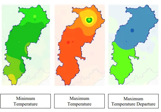 हाल ही में जारी आंकड़ों के अनुसार दुर्ग में अधिकतम तापमान 38.4 डिग्री दर्ज किया गया, जबकि रायपुर में भी तापमान 38 डिग्री के आसपास रहा। वहीं अंबिकापुर में न्यूनतम तापमान 16.5 डिग्री दर्ज किया गया। हालांकि यह तापमान अभी सामान्य के आसपास है, लेकिन आने वाले दिनों में इसमें तेजी से बढ़ोतरी होने की संभावना है।