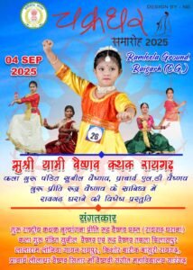 Chakradhar samaroh 2025:    *राष्ट्रीय कथक नृत्यांगना सुश्री यामी वैष्णव वर्तमान में माँ वैष्णवी संगीत महाविद्यालय सारंगढ़ की छात्रा हैं l सुश्री यामी वैष्णव 4 वर्ष की अल्प आयु से ही कथक की शिक्षा अपनी गुरु मां प्रीतिरुद्र वैष्णव एवं अंतराष्ट्रीय कला गुरु पंडित सुनील वैष्णव एवं प्राचार्य एल.डी.वैष्णव के सानिध्य में रायगढ़ घराने के विशेष बोलो की बंदिशों को तालीम गुरु शिष्य परंपरा से कथक नृत्य की साधना कर रही है।यामी वैष्णव को कथक नृत्य रायगढ़ घराने के चार स्तंभों में से एक स्तंभ नृत्य आचार्य पंडित फिरतु महाराज जी के पांचवे पीढी के रूप में विरासत से प्राप्त हुई हैl कम उम्र में ही यामी ने देश के प्रतिष्ठित राष्ट्रीयस्तर के मंचों में भाग लेकर प्रथम स्थान प्राप्त कर कथक नृत्य की बारीकियों को प्रदर्शित किया हैl*