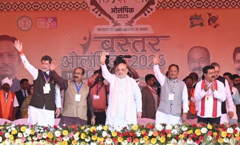 Chhatisgarh Latest News: रायपुर 13 दिसम्बर 2025/केन्द्रीय गृह एवं सहकारिता मंत्री श्री अमित शाह ने आज छत्तीसगढ़ के जगदलपुर में बस्तर ओलिंपिक के समापन समारोह को संबोधित किया। इस अवसर पर छत्तीसगढ़ के मुख्यमंत्री श्री विष्णुदेव साय और उपमुख्यमंत्री श्री विजय शर्मा सहित अनेक गणमान्य व्यक्ति उपस्थित थे।