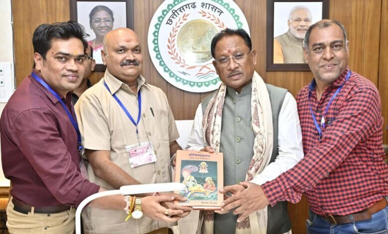 Chhatisgarh News: रायपुर, 04 मार्च 2025/मुख्यमंत्री श्री विष्णु देव साय से आज यहां उनके निवास कार्यालय में छत्तीसगढ़ श्रमजीवी पत्रकार संघ के प्रतिनिधिमंडल ने सौजन्य मुलाकात कर पत्रकार सम्मान निधि को दो गुना करने के साथ ही पत्रकारों के लिए बजट में नए प्रावधान करने के लिए आभार जताया। प्रतिनिधिमंडल ने इस मौके पर मुख्यमंत्री को श्री विष्णुपुराण की प्रति भी भेंट की।