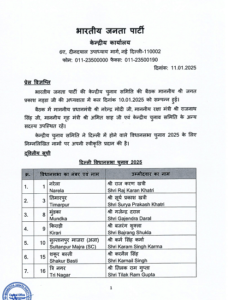 Delhi Election : दिल्ली विधानसभा चुनाव बीजेपी ने 29 उम्मीदवारों की दूसरी लिस्ट जारी की..