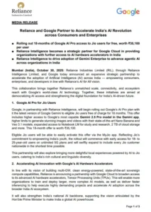हालांकि जियो ने स्पष्ट किया है कि आने वाले महीनों में यह ऑफर देश के सभी यूजर्स के लिए उपलब्ध होगा। यानी जल्द ही हर जियो ग्राहक इस फ्री Google AI Pro सब्सक्रिप्शन का लाभ उठा सकेगा।