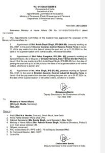 IPS Posting : इसी तरह केंद्रीय औद्योगिक सुरक्षा बल यानी सीएआईएसएफ की कमान पहली बार किसी महिला को सौंपी गई है। महिला आईपीएस अधिकारी नीना सिंह को सीआईएसएफ का डीजी बनाया गया है। आदेश में आईटीबीपी के डीजी के तौर पर अनीश दयाल सिंह की नियुक्ति हुई है जबकि राहुल रसगोत्र को आईटीबीपी का डायरेक्टर ऑफ जनरल बनाया गया है।