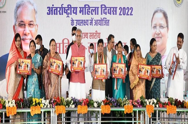 मुख्यमंत्री बघेल ने राज्य स्तरीय महिला सम्मेलन में आंगनबाड़ी सेवाओं में उत्कृष्ट कार्य करने वाली आंगनबाड़ी कार्यकर्ताओं, छत्तीसगढ़ महिला कोष योजनाओं से लाभ लेकर महिलाओं को आर्थिक रूप से स्वावलंबी बनाने वाले स्व-सहायता समूहों को सम्मानित किया। इसी प्रकार उन्होंने सखी वन स्टॉप सेंटर और नवा बिहान योजना के तहत महिला संरक्षण की दिशा में उत्कृष्ट कार्य करने वाली अधिकारियों को भी सम्मानित किया। उन्होंने इस मौके पर कन्या विवाह योजना कॉफी टेबल बुक, सखी वन स्टॉप सेंटर टेलीफोन डायरेक्ट्री और महिला सशक्तीकरण से संबंधित योजनाओं के ब्रोशर का भी विमोचन किया।मुख्यमंत्री बघेल ने अंतर्राष्ट्रीय महिला दिवस के अवसर पर बीटीआई ग्राउंड में आयोजित चार दिवसीय राज्य स्तरीय महिला मड़ई में प्रदेशभर से आई महिला स्व-सहायता समूहों द्वारा तैयार उत्पादों की प्रदर्शनी के स्टालों का भी अवलोकन किया। बस्तर के महिला समूहों के स्टॉल से मुख्यमंत्री ने बेलमेटल से निर्मित कला कृति खरीदी और तुरही बजा कर महिलाओं के उत्साह को दोगुना कर दिया।