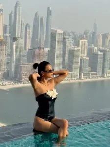 हाल ही में निया ब्लैक कलर की मोनोकिनी पहनकर पूल में हुस्न के जलवे बिखेरती हुई नजर आई.