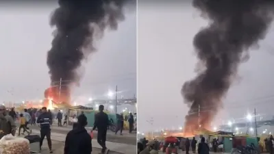 Prayagraj magh mela fire प्रयागराज माघ मेले में मंगलवार शाम आग लगने से हड़कंप मच गया। सेक्टर 5 के नारायण शुक्ला धाम शिविर में आग लगी थी। शिविर से उठ रही आग की लपटें दूर तक नजर आ रही थी। इससे 15 टेंट और 20 दुकानें जलकर राख हो गईं। शिविर में करीब 50 कल्पवास थे, जो जान बचाकर भागे। अभी तक किसी के झुलसने होने की सूचना नहीं है।