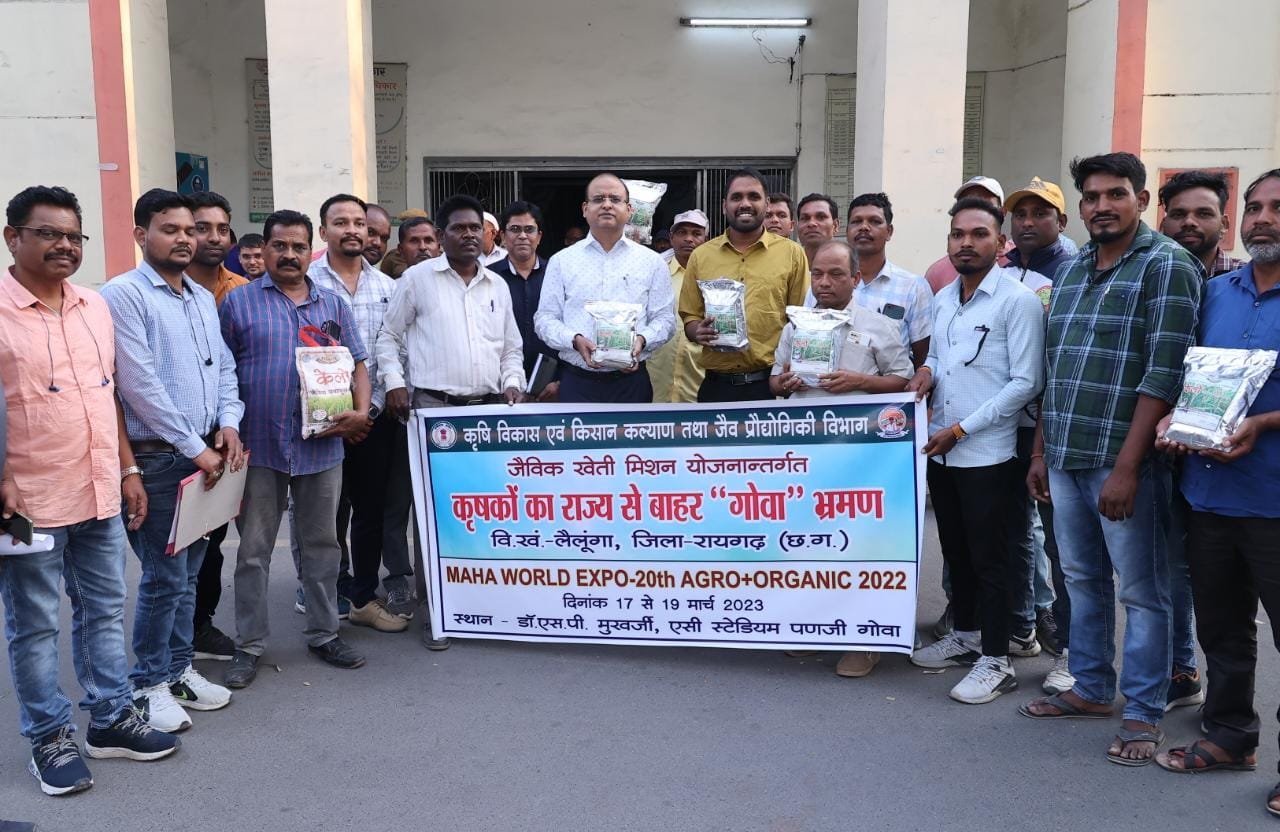 Raigarh News रायगढ़, 14 मार्च2023/ कलेक्टर श्री तारन प्रकाश सिन्हा ने आज लैलूंगा ब्लाक के 23 किसानों को गोवा भ्रमण के लिए रवाना किया। ये किसान भारत के गोवा राज्य के राजधानी पणजी में आयोजित विश्व स्तरीय महाजैविक उत्पाद प्रदर्शनी में लैलूंगा के सुगंधित जवाफूल चावल की प्रदर्शनी लगायेंगे। इस मौके पर सीईओ जिला पंचायत श्री अबिनाश मिश्रा, उप संचालक कृषि श्री अनिल कुमार वर्मा भी उपस्थित थे।