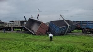 Raigarh News रायगढ़। रायगढ़ शहर से इस वक्त एक बड़ी खबर सामने आ रही है जहां बताया जा रहा है कि रायगढ़ रेलवे स्टेशन एवं कोतरा रोड रेलवे फाटक के बीच रुक्मणि विहार कॉलोनी के पीछे भूपदेवपुर से कोयला खाली कर वापस झारसुगुड़ा को ओर जाने के लिए ट्रैक पर खड़ी थी तभी जिंदल की की तरफ जा रही तेज रफ्तार इंजन अचानक टकरा गयी। घटना की जानकारी मिलते ही रेलवे प्रशासन व रेलवे सुरक्षा बल की टीम मौके पर मौजूद है और ट्रैक पर पलटी मालगाड़ी के डिब्बों एवं दुर्घटना कार्य इंजन को हटाने का प्रयास कर रही है।