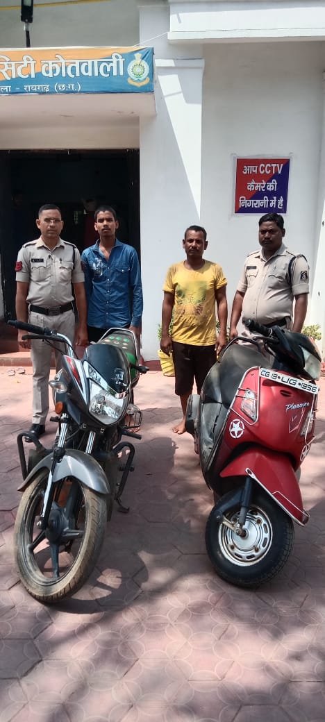 Raigarh News: कोतवाली पुलिस ने चोरी की स्कूटी और मोटरसाइकिल के साथ दो आरोपियों को किया गिरफ्तार