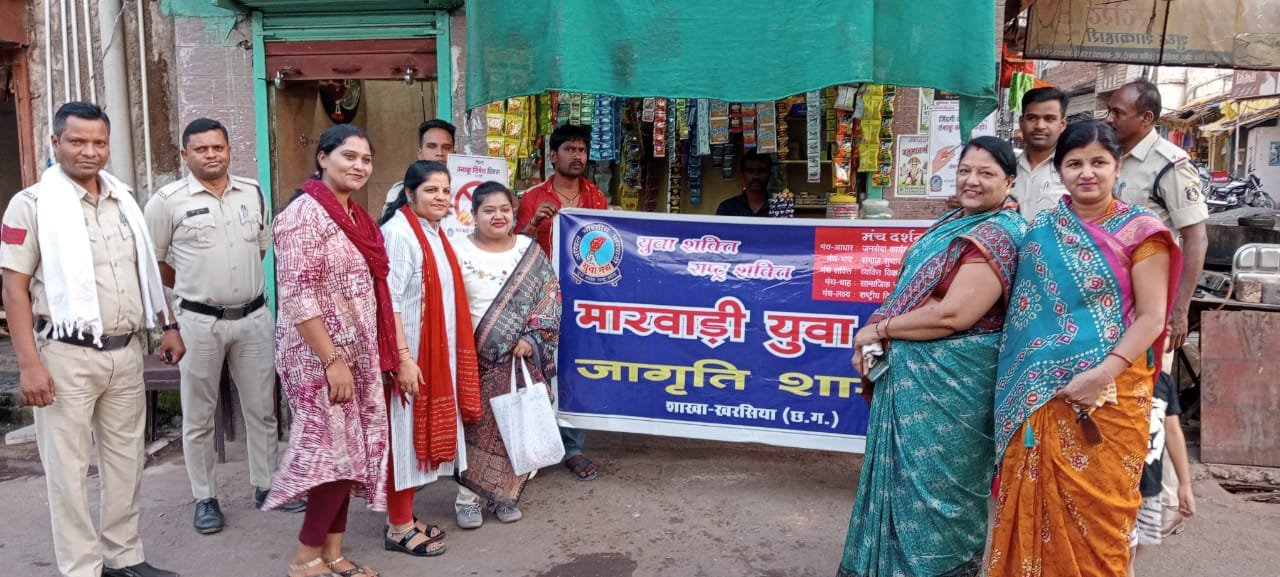 Raigarh News *रायगढ़* । तंबाकू के सेवन से होने वाले नुकसान के प्रति जागरूक करने को लेकर प्रतिवर्ष 31 मई को विश्व तंबाकू निषेध दिवस मनाया जाता है । इसी अनुक्रम में चौकी खरसिया पुलिस व खरसिया क्षेत्र की विभिन्न महिला समूह द्वारा विश्व तंबाकू निषेध दिवस पर संयुक्त रूप से खरसिया शहर में नशा मुक्ति का संदेश देने अभियान चलाया गया । मुहिम के तहत खरसिया पुलिस द्वारा सार्वजनिक स्थानों, पान ठेला व दुकानों में पोस्टर चिपकाए गये तथा शहर में बैनर के साथ रैली निकालकर आमलोगों को नशे से दूर रहने का संदेश दिया गया ।