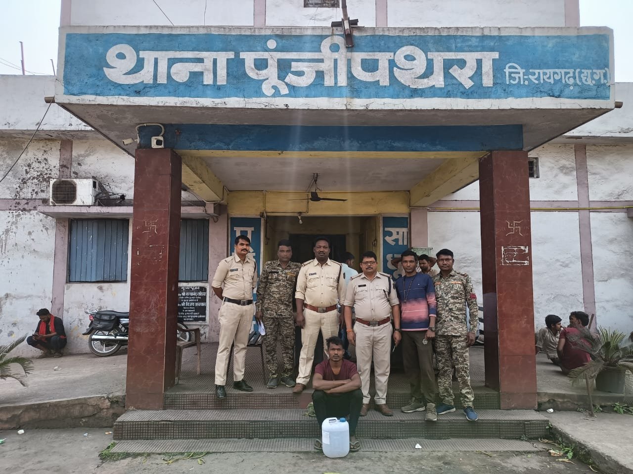 Raigarh News: ग्राम गेरवानी में 10 लीटर महुआ शराब के साथ आरोपी गिरफ्तार, पूंजीपथरा पुलिस की कार्यवाही