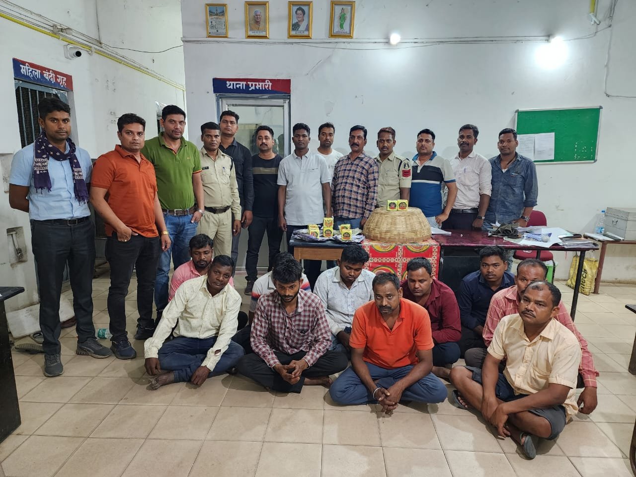 Raigarh News *रायगढ* । ओडिशा से लगे तमनार- लैलूंगा क्षेत्र के जंगलों में ओडिशा सीमावर्ती गांव के कई जुआरियों के 52 पत्ती ताश तथा खुडखुड़िया पट्टी में रुपयों का दांव लगाकर जुआ की सूचना वरिष्ठ पुलिस अधिकारियों को मिल रही थी । इन सूचनाओं पर कारगर कार्यवाही के लिए वरिष्ठ पुलिस अधीक्षक रायगढ़ श्री सदानंद कुमार द्वारा साइबर सेल पर्यवेक्षण अधिकारी/ एसडीओपी धरमजयगढ़ दीपक मिश्रा को कार्यवाही कराने का निर्देश दिया गया है । निर्देशों के पालन में एसडीओपी धरमजयगढ़ श्री दीपक मिश्रा द्वारा थाना प्रभारी तमनार, लैलूंगा, घरघोड़ा एवं धरजयगढ़ को क्षेत्र में मुखबीर लगाकर कार्यवाही का निर्देश दिया गया है । साथ ही साइबर सेल स्टाफ को भी क्षेत्र में अपने मुखबिर सक्रिय कर नजदीकी करने निर्देशित किया गया है । इसी कड़ी में आज शाम साइबर सेल स्टाफ तमनार क्षेत्र जाकर सक्रिय मुखबिरों से सूचना लिये। मुखबिर से सूचना मिली कि चिर्रामुड़ा तमनार के जंगल में बाहरी लोग खुडखुड़िया पट्टी में रुपए का दांव लगाकर जुआ खिलाया जा रहा है । साइबर सेल स्टाफ द्वारा मुखबिर से मिली सूचना वरिष्ठ अधिकारियों को अवगत कराया गया जिसके बाद थाना तमनार एवं साइबर सेल स्टॉफ की संयुक्त टीम बनाकर सुनियोजित तरीके से मुखबिर द्वारा बताए स्थान की घेराबंदी कर रेड कार्यवाही किया गया । जहां जुआ खिलाने वाला समेत 10 जुआरियों को पुलिस पकड़ी जिनके पास से नगद ₹50650 और खुडखुड़िया जुआ सामग्री की जब्ती की गई है । जुआ फड पर पकड़े गए जुआरी हिमगिर ओडिशा, तमनार, लैलूंगा क्षेत्र के रहने वाले हैं। थाना प्रभारी तमनार निरीक्षक प्रवीण मिंज द्वारा जुआरियों को आगे क्षेत्र में जुआ खेलते पकड़े जाने पर पृथक से प्रतिबंधक कार्यवाही की चेतावनी दी गई है । पकड़े गए 10 जुआरियों पर धारा 4 (क) जुआ एक्ट के तहत थाना तमनार में कार्यवाही किया गया है । जुआ रेड कार्यवाही में थाना प्रभारी तमनार निरीक्षक प्रवीण मिंज, प्रधान आरक्षक संतोष कुर्रे, देव प्रसाद राठिया तथा साइबर सेल के प्रधान आरक्षक राजेश पटेल, बृजलाल गुर्जर, प्रदीप गहलोत, आरक्षक प्रशांत पंडा, महेश पंडा, पुष्पेंद्र जाटवर, नंदू पैकरा, प्रदीप तिवारी, मुकेश यादव, साविल चंद्रा, विकास प्रधान, सुरेश सिदार और नवीन शुक्ला शामिल थे ।