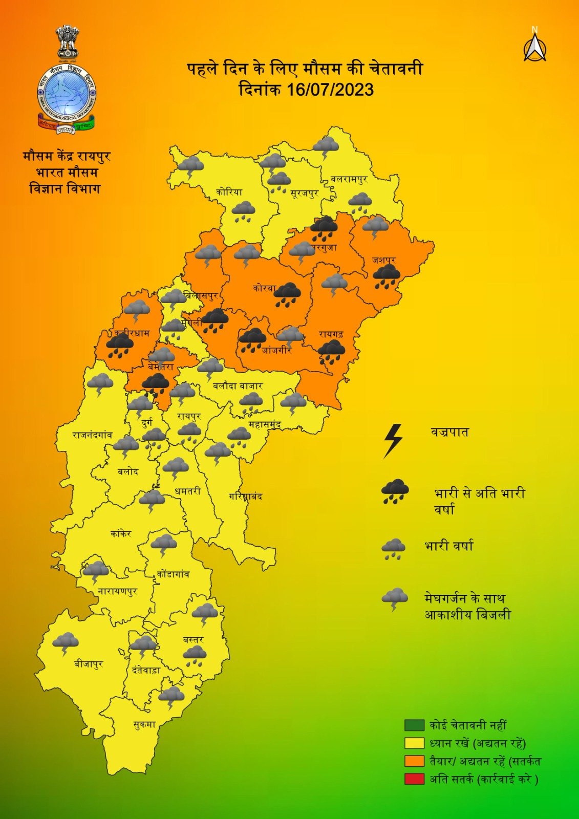 Raigarh News मौसम विभाग द्वारा जारी अलर्ट में 16 से 20 जुलाई की अवधि में जिले भारी से अति भारी बारिश होने की चेतावनी दी गई है। जिला प्रशासन ने जिले में भारी बारिश की संभावना को देखते हुए लोगों से भी सतर्क रहने की अपील की है।