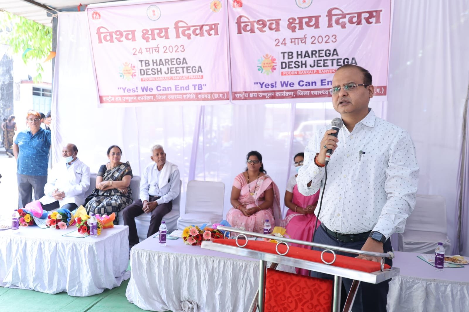 Raigarh News रायगढ़, 24 मार्च2023/ स्वास्थ्य विभाग एवं जिंदल फाउण्डेशन के संयुक्त तत्वाधान में आज शासकीय जिला चिकित्सालय रायगढ़ में विश्व क्षय दिवस का आयोजन किया गया। इस मौके पर कलेक्टर श्री तारन प्रकाश सिन्हा ने कहा कि ‘टीबी हारेगा, देश जीतेगा’ 2025 तक इस देश में टीबी को खत्म करने का लक्ष्य मिला है। इस दिशा में हम सबको मिलकर कार्य करना होगा। इस आयोजन का मुख्य उद्देश्य लोगों में जागरूकता लाना है। जो बीमार है या जिसको बीमारी हुई है उनको इस बीमारी से लडऩे के लिए सुविधाएं मुहैय्या कराना है। भारत सरकार ने एक योजना लागू की है जिसमें एक सहयोगी के रूप में चाहे वो पंचायत के प्रतिनिधि या औद्योगिक संस्थानों के प्रबंधक या अन्य कोई नागरिक उनको नियुक्त किये जाने का प्रावधान किया गया है और इनके माध्यम से उन्हें टीबी मरीजों को नि:शुल्क सुपोषित भोजन देने का प्रावधान रखा गया है। इस मौके पर जिला पंचायत अध्यक्ष श्री निराकार पटेल, महापौर श्रीमती जानकी काटजू, सीएमएचओ डॉ.मधुलिका सिंह ठाकुर उपस्थित रहे।