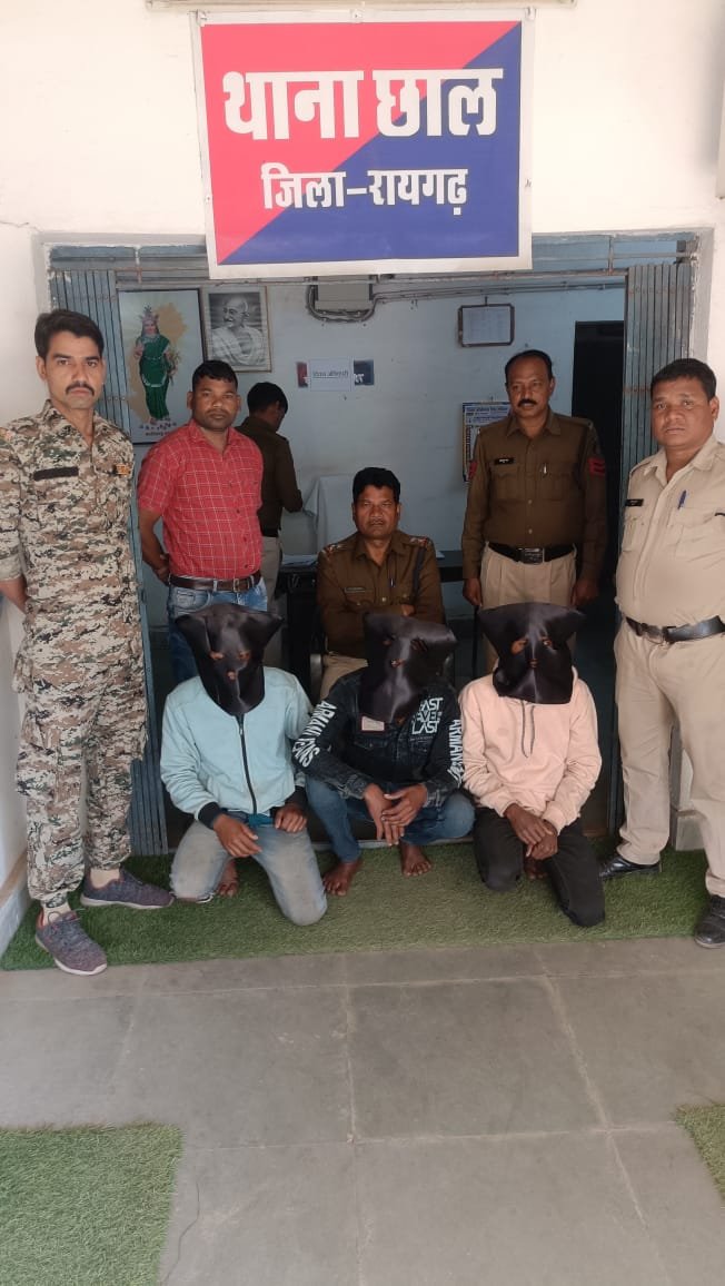 (3) संजू कुमार राठिया पिता स्वर्गीय बलदेव सिंह राठिया 24 साल तीनों निवासी ग्राम चांपा चचिया थाना करतला जिला रायगढ़