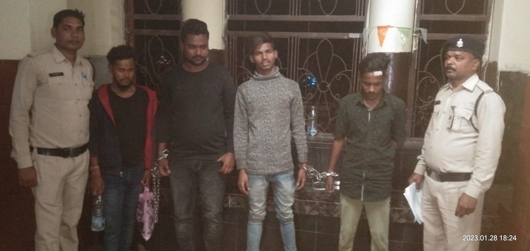 (1) विशाल उर्फ लादेन पिता बाबूलाल यादव उम्र 19 साल निवासी मिट्ठूमुड़ा थाना जूटमिल (2) सोनू चौहान पिता अजय चौहान उम्र 20 साल (3) मोहम्मद आरिफ पिता मोहम्मद आसिफ 24 साल (4) विकास चौहान पिता कुंज बिहारी चौहान 24 साल तीनों निवासी बजरंगपारा निगम कॉलोनी थाना जूटमिल (5) विधि के साथ संघर्षरत बालक ।